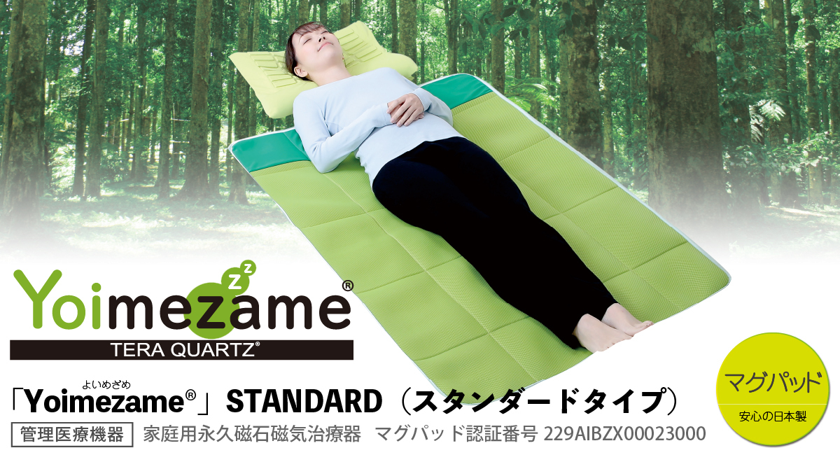 「Yoimezame®」マグパッドは、永久磁石を装着 した家庭向けの管理医療機器を数多く製造してきたボディーオーラ株式会社が開発。人生の中で3分の1を過ごす睡眠時間を有効活用するために開発した商品です。今お使いの寝具に『敷くだけ!』で すぐ簡単にお使いいただけます。